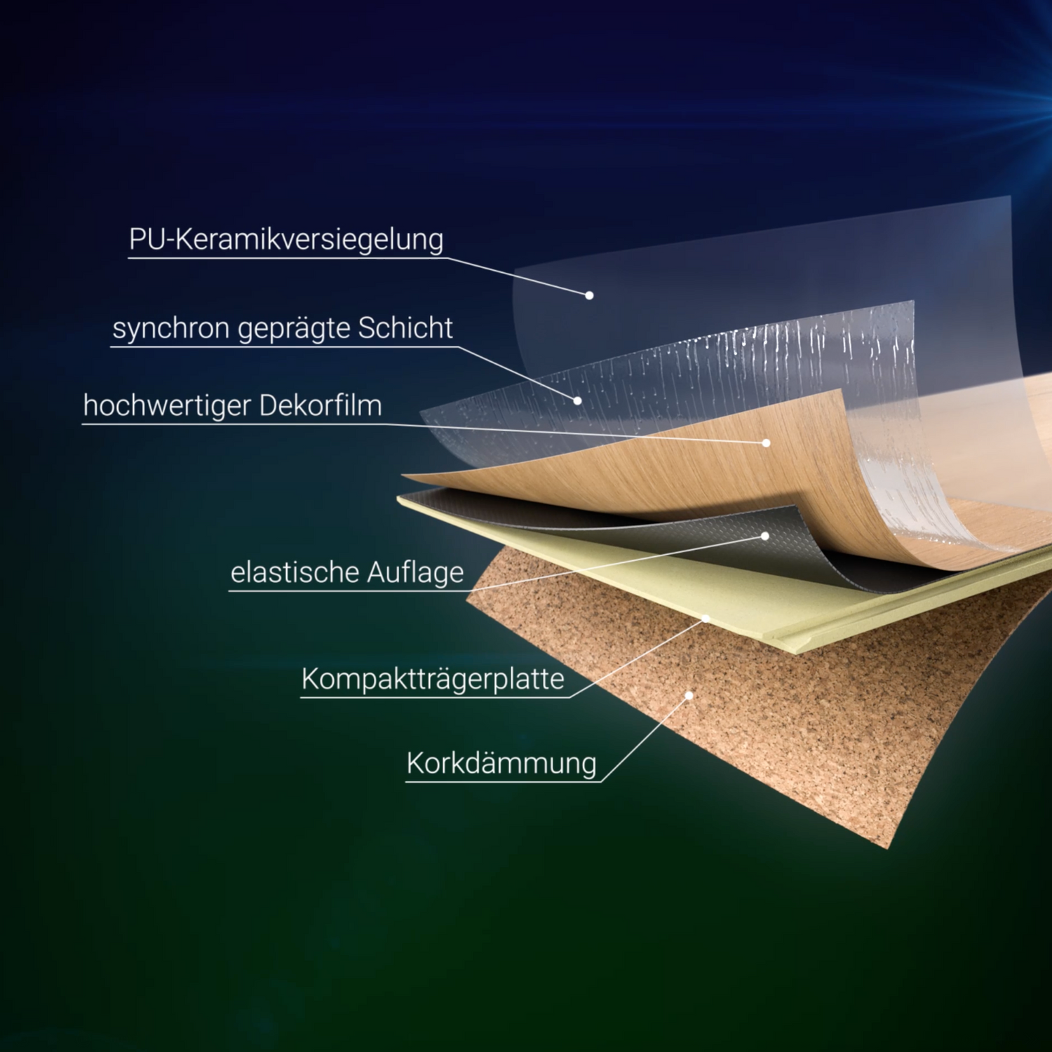 Nachhaltige 1,5 mm Korkdämmung integriert
